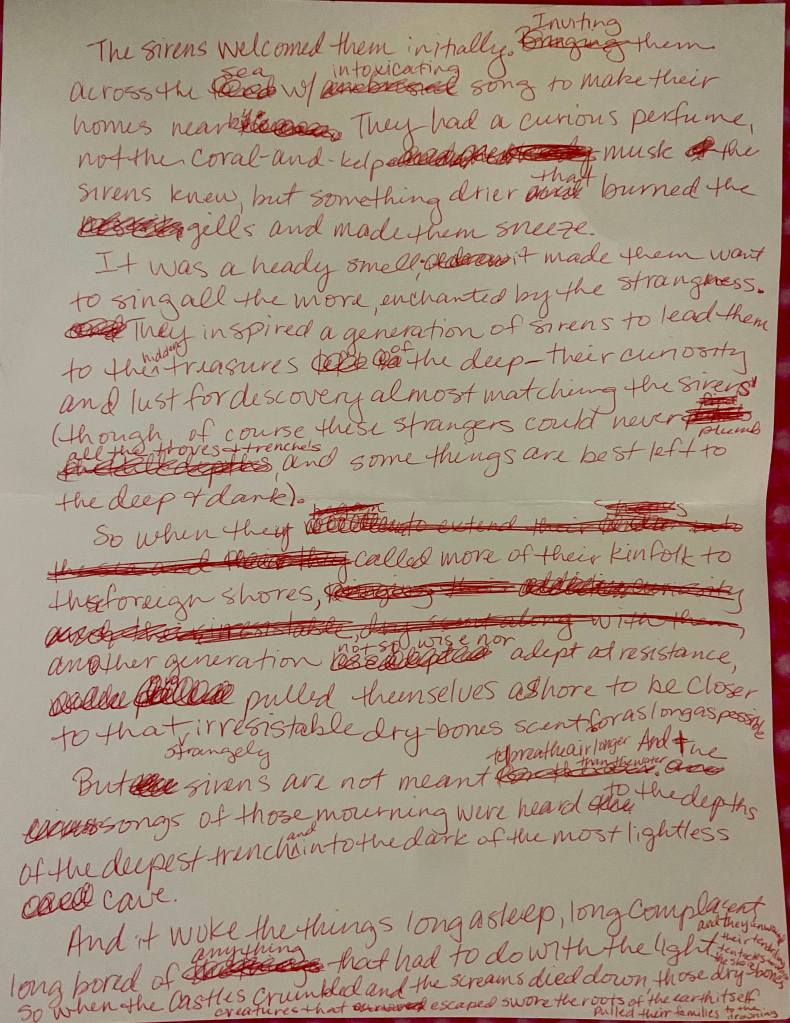 The sirens welcomed them initially. Inviting them across the sea with intoxicating song to make their homes nearby. They had a curious perfume, not the coral-and-kelp musk the sirens knew, but something drier that burned the gills and made them sneeze.